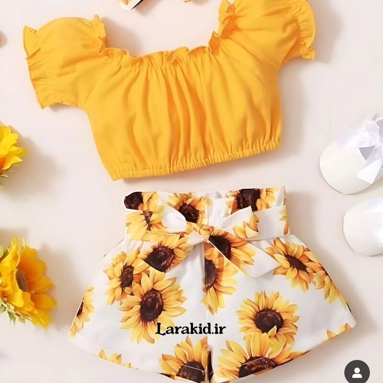 تاپ و شلوارک دخترانه جنس کرپ مناسب 6 ماه تا ۹سال