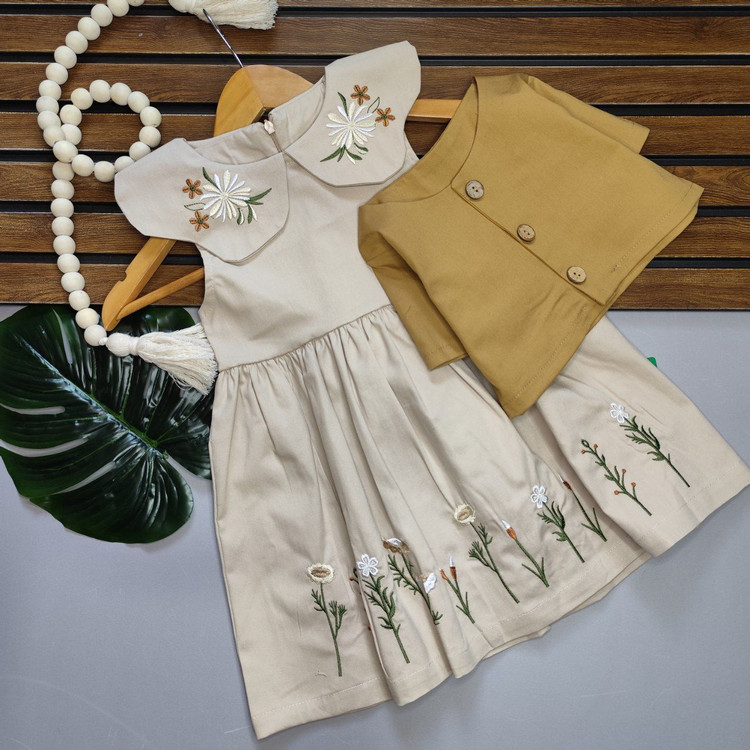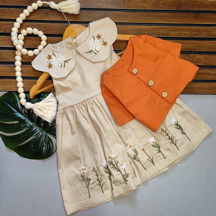 کت و سارافون دخترانه،جنس کتان درجه یک، مناسب حدود ۳ تا ۱۰ سال