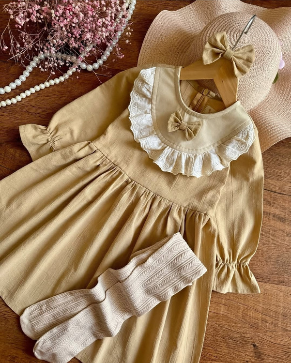 پیراهن دخترانه ، جنس لینن ، مناسب حدود ۳ تا ۸ سال