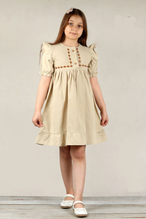 پیراهن دخترانه ، جنس لینن بدون آبرفت، مناسب ۴ تا ۹ سال