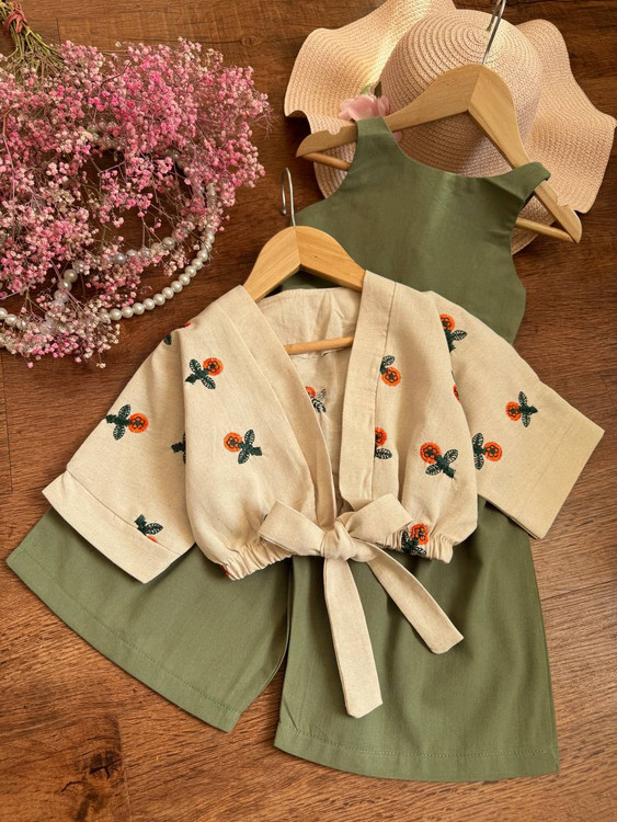 ست دخترانه ، اورال و رویه دخترانه ، جنس لینن ، مناسب حدود ۲ تا ۷ سال