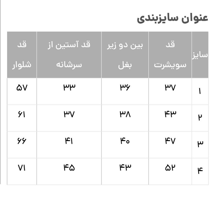 سویشرت و شلوار دخترانه_سایربندی ۴٠ تا ۵۵