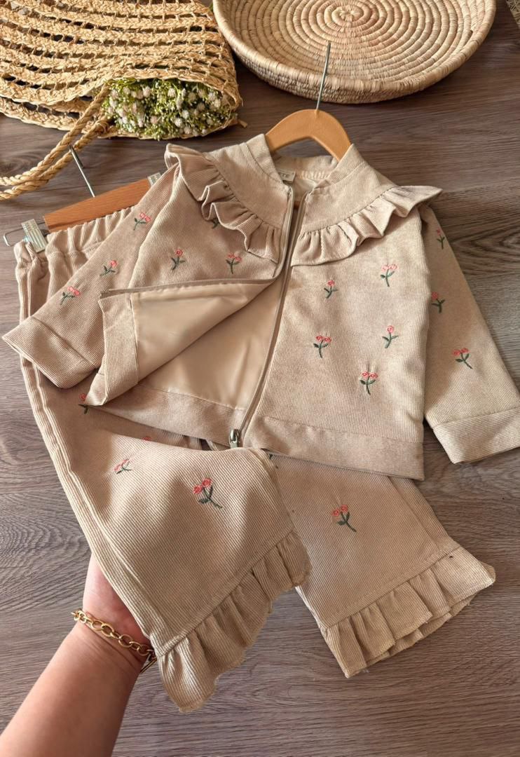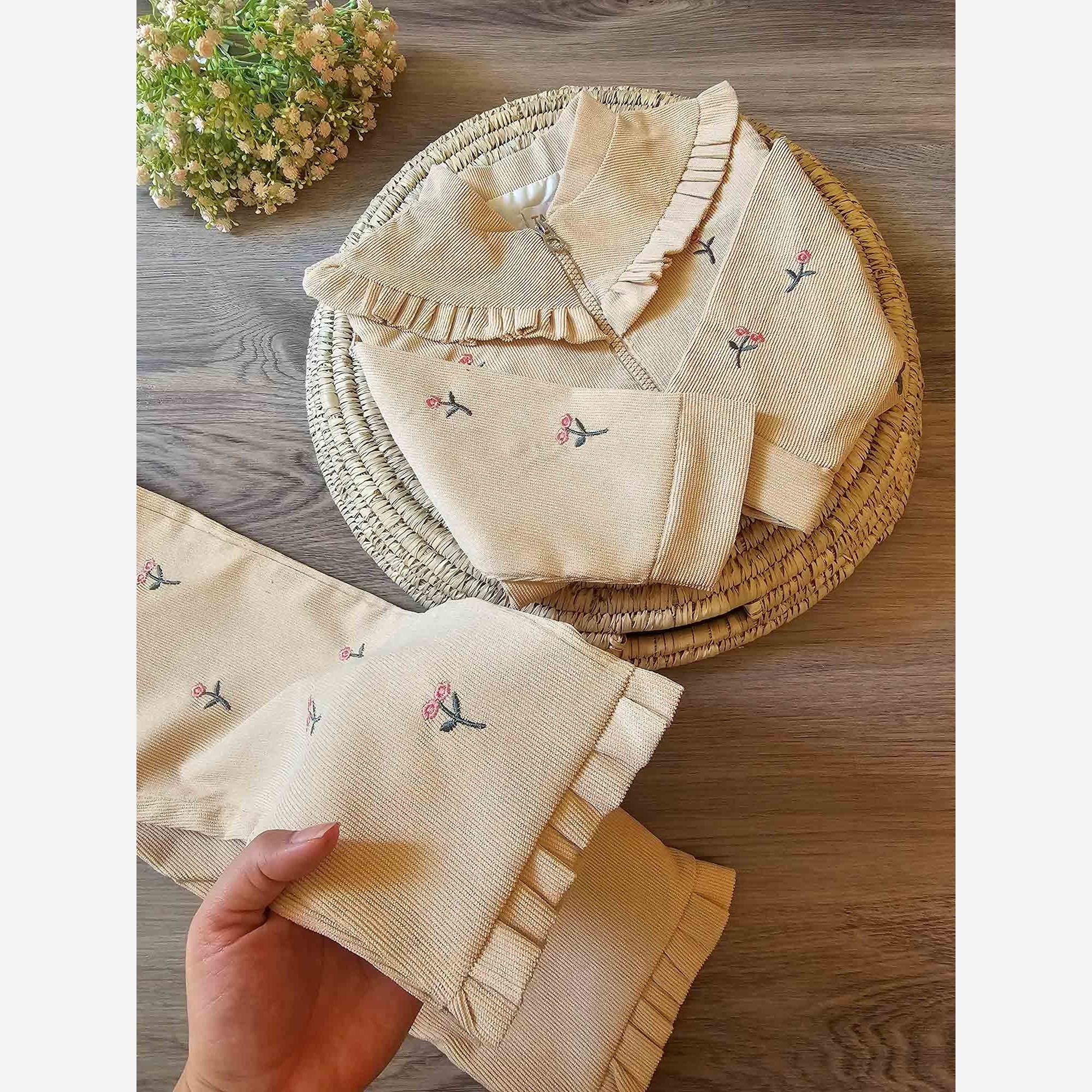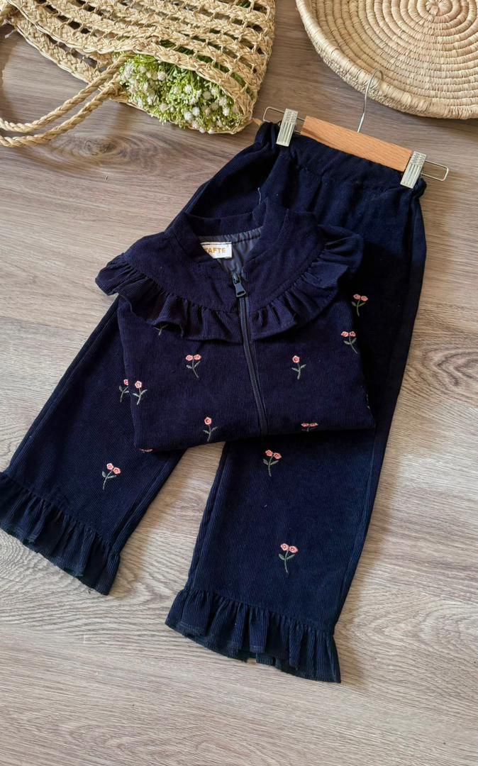 سویشرت و شلوار دخترانه، جنس مخمل کبریتی، مناسب ۳ تا ۹ سال