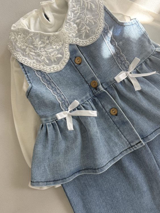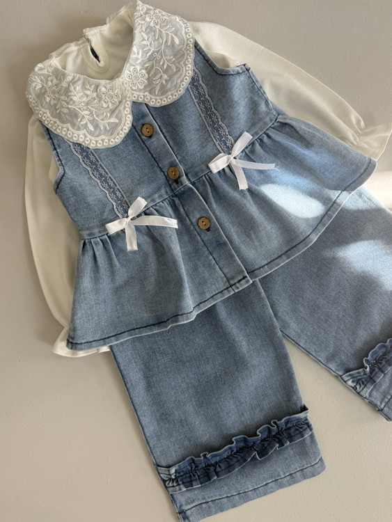 ست دخترانه، بلوز و جلیقه و شلوارجین، مناسب ۲ تا ۹ سال