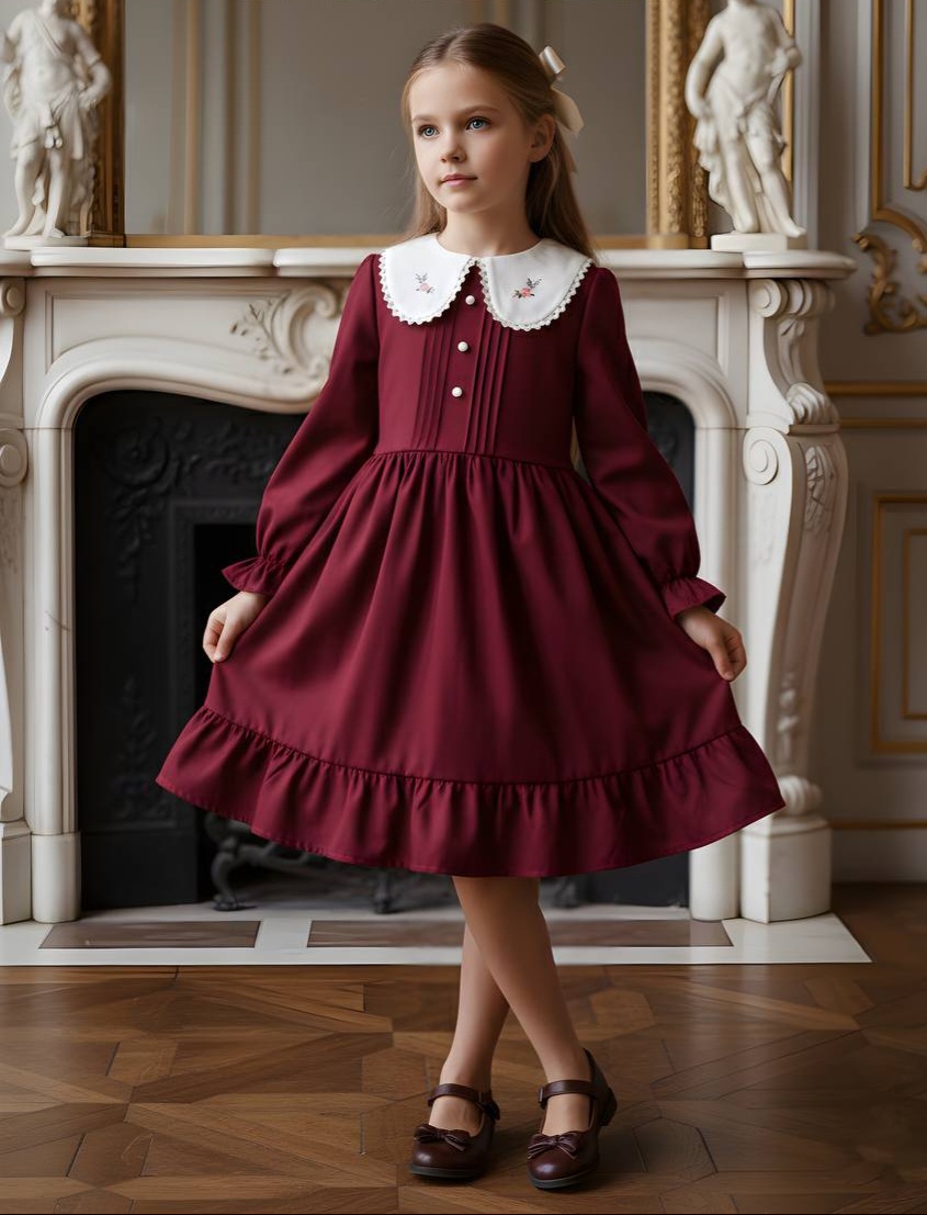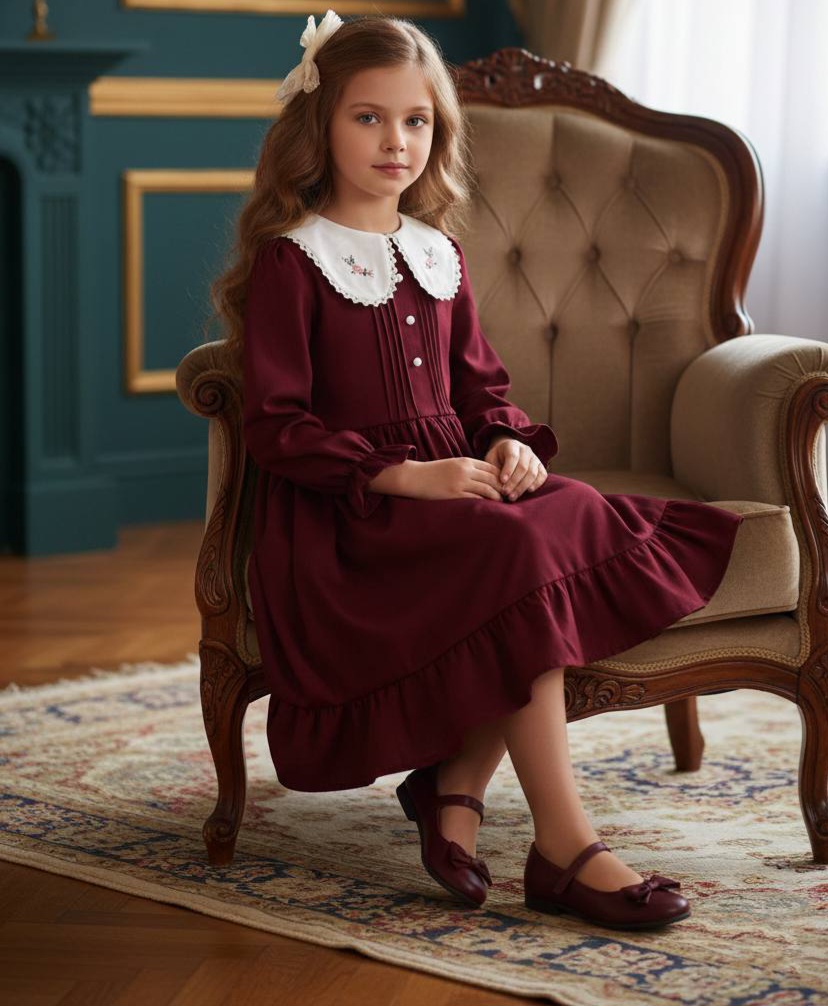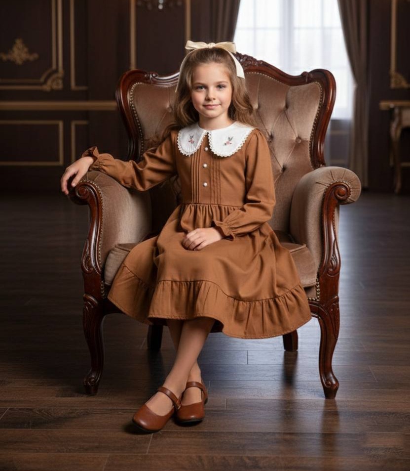 پیراهن دخترانه، جنس کتان ، مناسب ۷ تا ۱۲ سال