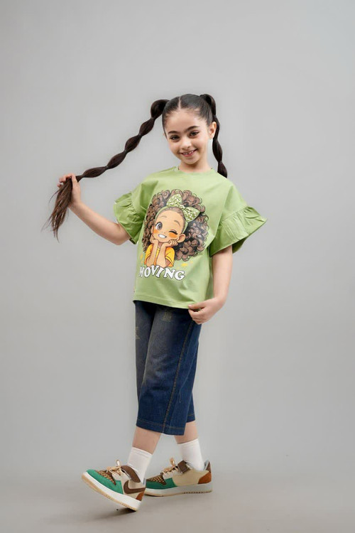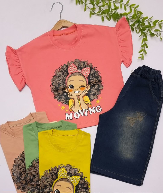 ست تیشرت و شلوارک جین دخترانه، سایز 40 تا 55