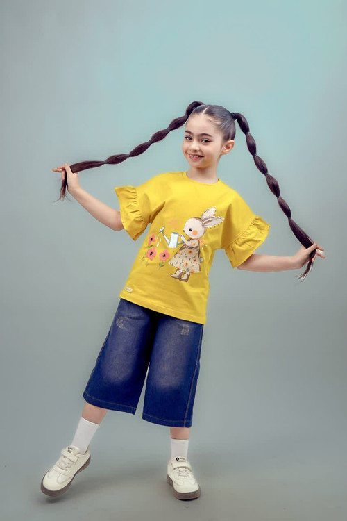 ست تیشرت و شلوارک جین دخترانه، سایز ۳۵ تا ۴۰