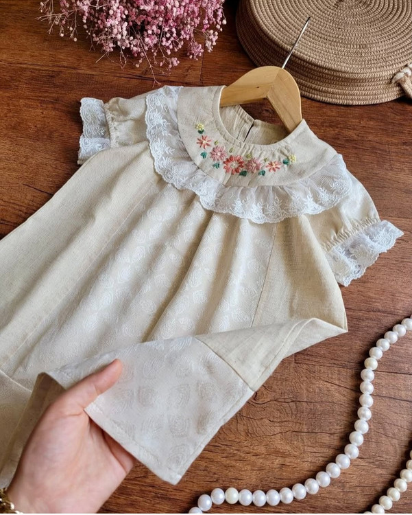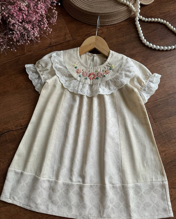 پیراهن دخترانه جنس لینن مناسب 3 تا 9 سال