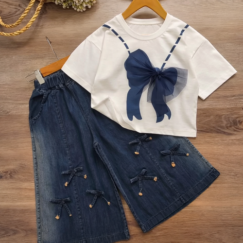 شومیز و شلوار جین دخترانه ، ست دو تیکه ی لی دخترانه ، مناسب ۲ تا ۱۰ سال